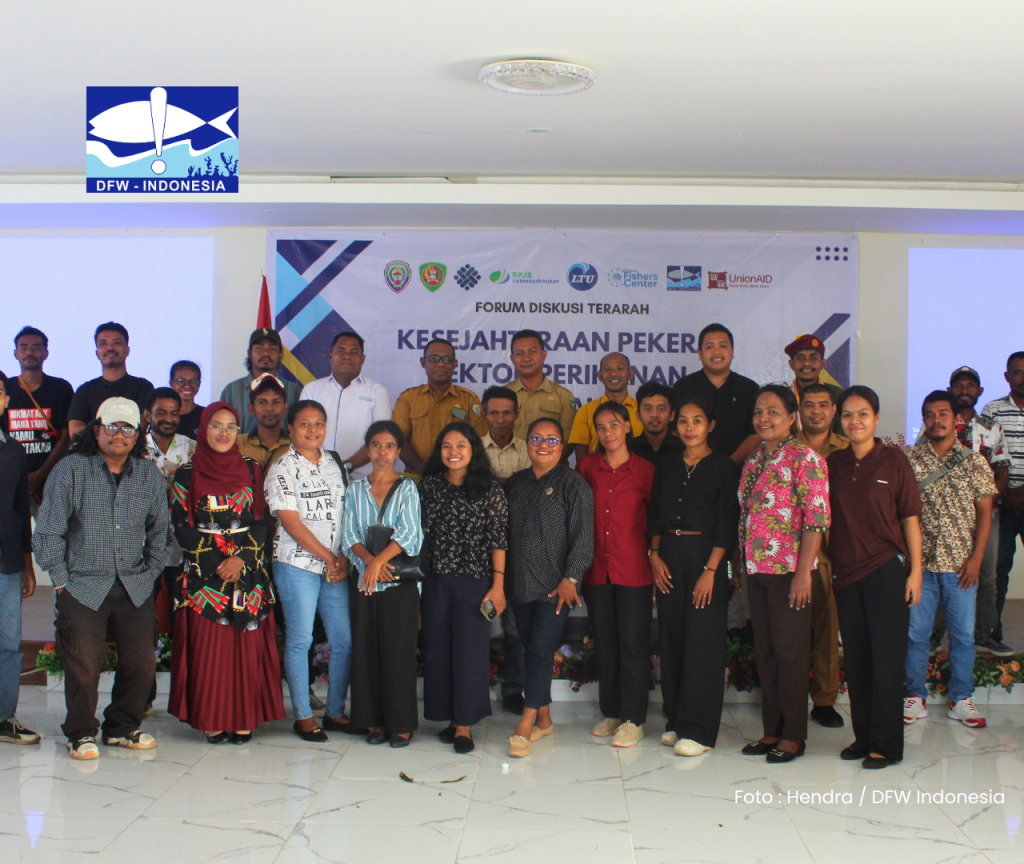 Dobo, Kepulauan Aru, 11 Agustus 2025 — Destructive Fishing Watch (DFW) Indonesia melalui program National Fishers Center (NFC) Indonesia, menyelenggarakan Forum Diskusi Terarah di Aula Hotel Apex, Dobo. Forum tersebut menjadi ruang dialog lintas sektor untuk memperkuat perlindungan dan kesejahteraan pekerja di sektor perikanan dan kelautan Kepulauan Aru. Sebagai ruang dialog lintas sektor, forum ini  dihadiri oleh berbagai pemangku kepentingan di Dobo, antara lain Fajar Muarifin P, Direktur PT Laut Timur Utama, Boy Darakay, Kepala Bidang Hubungan Industrial Syarat Kerja dan Jamsostek Dinas Transmigrasi dan Tenaga Kerja Kabupaten Kepulauan Aru, Reynaldo Hiariej, Kepala Pelabuhan Perikanan Pantai Dobo, George Jaftoran, perwakilan BPJS Ketenagakerjaan Kepulauan Aru, dan Ari Jerfatin, Regional Field Facilitator DFW Indonesia. Kepulauan Aru termasuk dalam Wilayah Pengelolaan Perairan (WPP) 718. Di dalam wilayah tersebut, Pendapatan Asli Daerah (PAD) secara akumulatif mencapai Rp. 20 triliun per tahun.