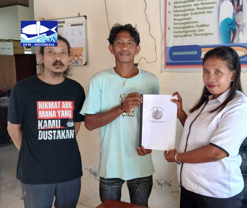 Kepulauan Aru, 11 Februari 2026 — Yabes Atuany ditemani dengan Hendra, pendamping lapangan dari Destructive Fishing Watch (DFW) Indonesia, Johan Djamamona, Ketua Dewan Pertimbangan Organisasi, dan Ari Jerfatin, Ketua Majelis Etik, mendatangi Dinas Ketenagakerjaan dan Transmigrasi (Disnakertrans) Kabupaten Kepulauan Aru untuk proses pendaftaran Serikat Pekerja Kelautan dan Perikanan Aru (SPEKA ARU).